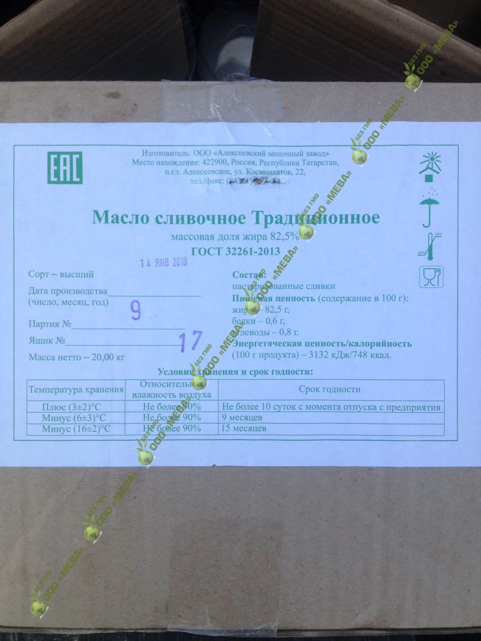 Масло, сливочное “Традиционное”, СТРОГО ГОСТ 32261-2013, жирность 82,5%, 20кг (монолит) напрямую с Алексеевского МКК. Республика Татарстан. (не перекупы, цены прямые с завода)